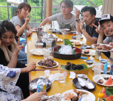 ホタテガイ、イカ、気仙沼ホルモンなど、気仙沼の特産品を集めた海鮮BBQをどうぞ!