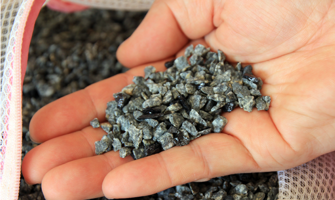 花崗岩角閃石、ブラックシリカ、麦飯石、十和田石の4種類の鉱石を使用しており
