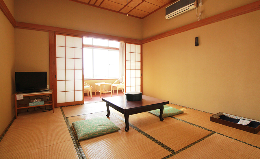 すべての客室がオーシャンビューです。造りは素朴な日本間で、広縁、洗面所が付いた過ごしやすいお部屋です。