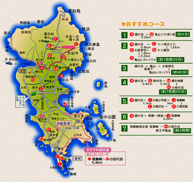 気仙沼大島の北東部・大初平にある長さ約m、幅約mの砂浜です。黄褐色の石英粒からなり、砂を踏むと「キュッキュッ」あるいは「クックッ」(9+9=18)と鳴くことから、この名が付けられました。